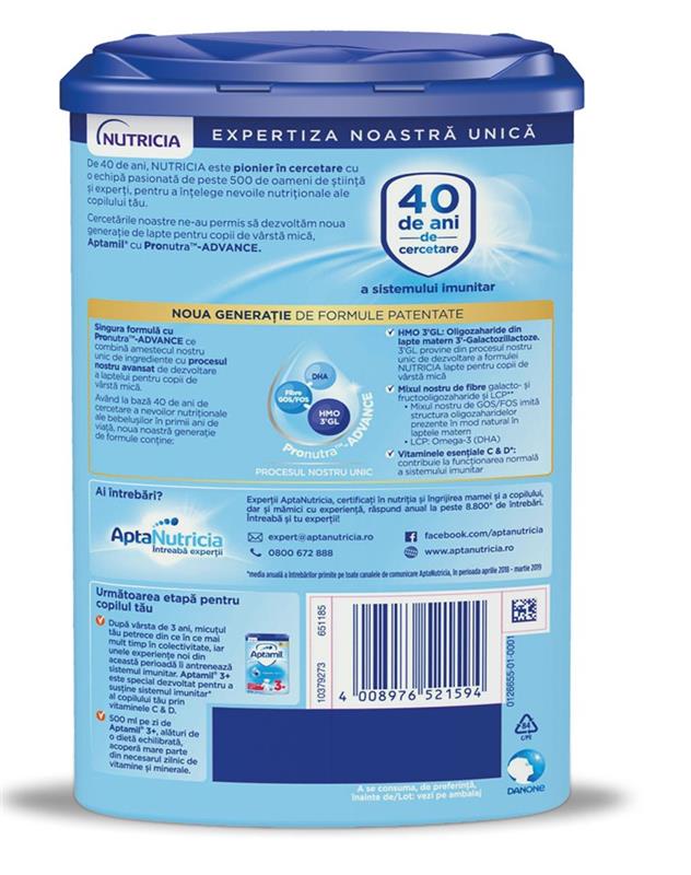 Astfel, am dezvoltat Aptamil 2+ ce contine acum mixul nostru unic de oligozaharide GOS/FOS¹ si 3’GL², alaturi de nutrienti importanti prezenti natural in laptele matern3.