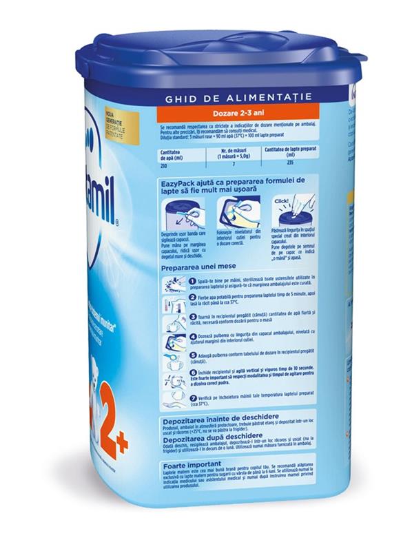 Plus vitaminele C & D* care contribuie la functionarea normala a sistemului imunitar. Aptamil 2+ este adecvat pentru alimentatia copiilor peste 2 ani ca parte a unei diete echilibrate.